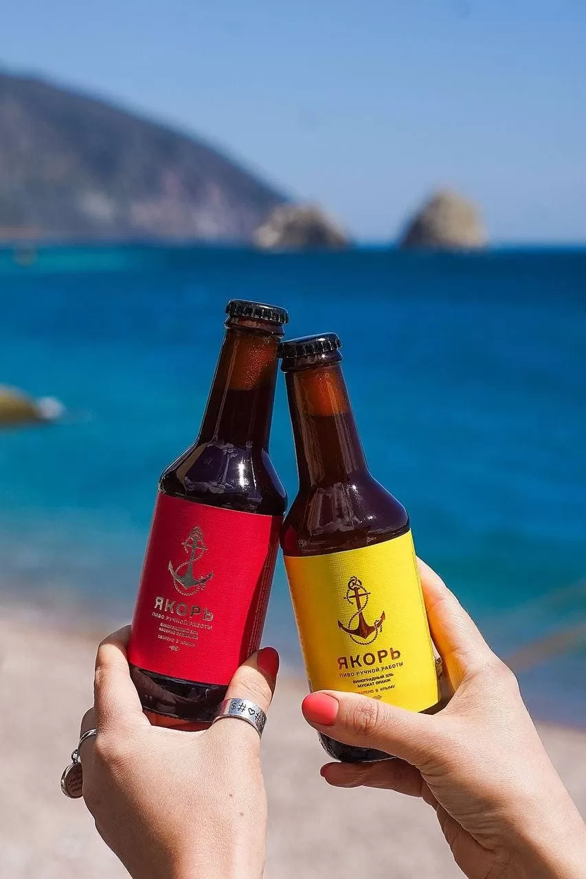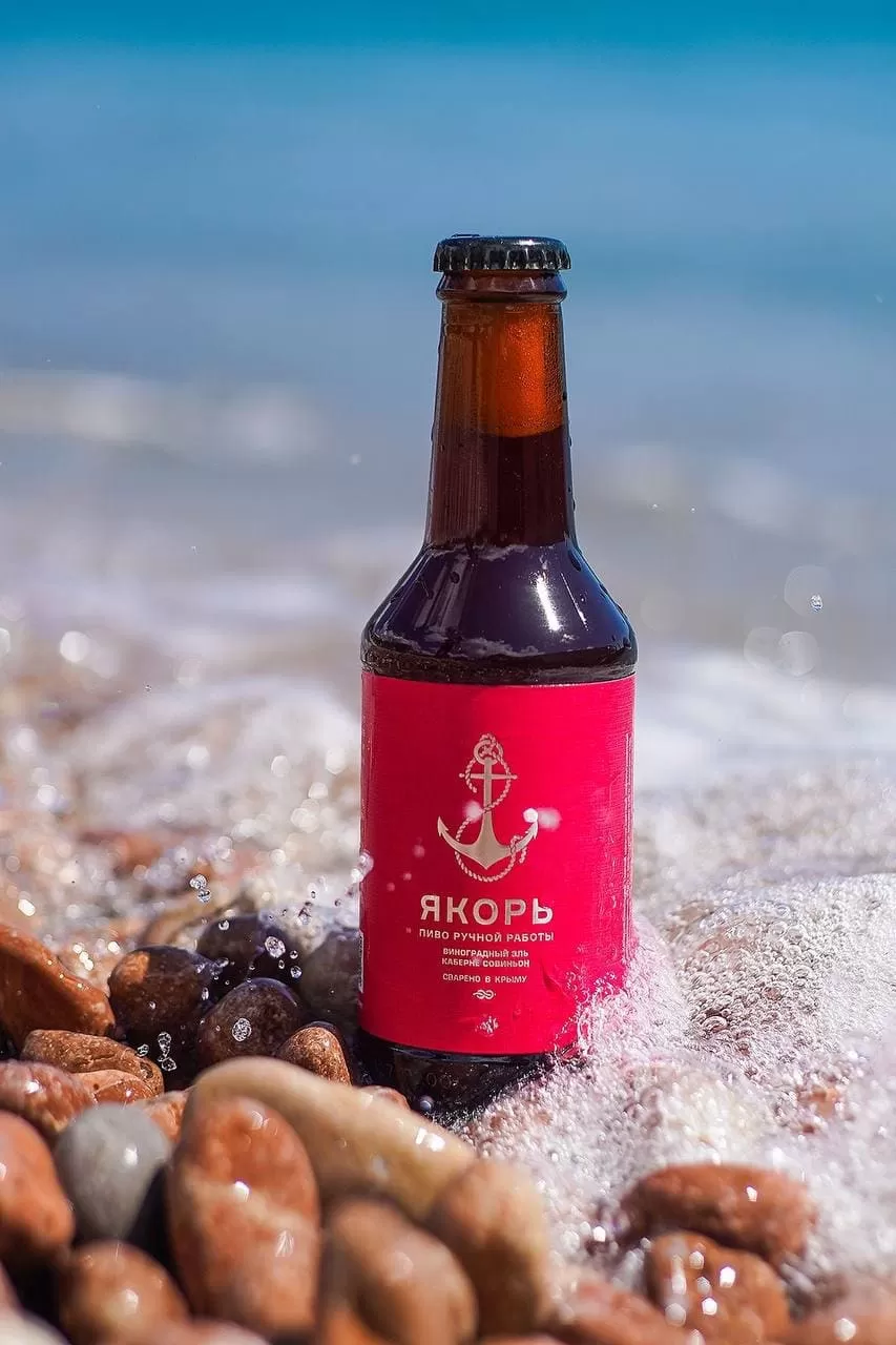 «Якорь» — крымская авторская пивоварня. Это крупнейший в России производитель виноградного пива: в арсенале полтора десятка сортов, а годовой объем релизов достигает 100 тысяч бутылок 0,75 литра в год. Компания использует виноград, который закупает у виноделов Севастополя и Крыма, а еще — сезонные крымские фрукты, ягоды и травы: персики, абрикосы, клубнику, лаванду, полынь, можжевельник. Удивительные сочетания их вкусов и ароматов в пиве — это и есть айдентика «Якоря», фирменный крымский стиль.