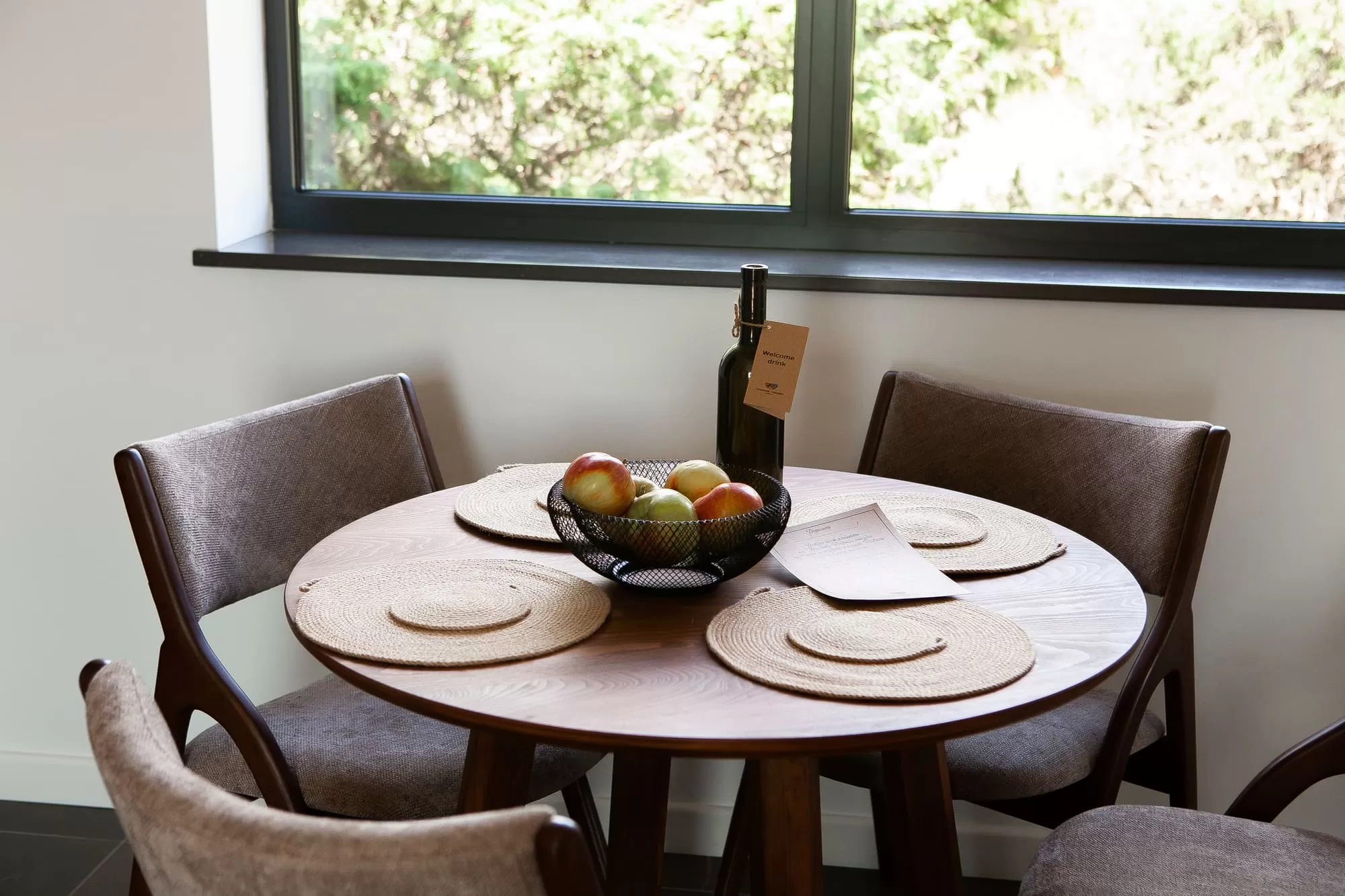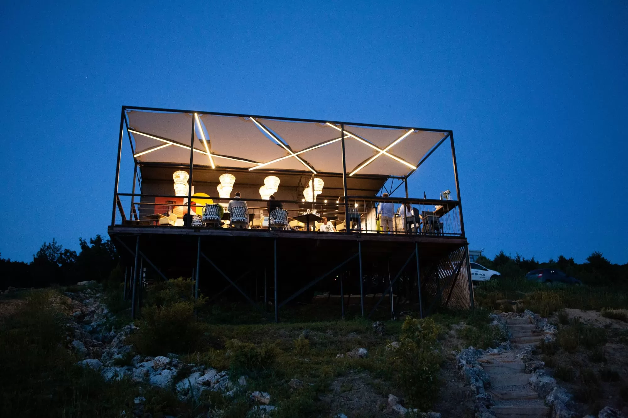 Ресторан «Гнездо» - место, где объединяются потрясающий крымский пейзаж, качественное российское вино и интеллектуальная кухня для наших гостей. Находится в самом сердце хозяйства, в окружении молодых виноградников и можжевелового леса.