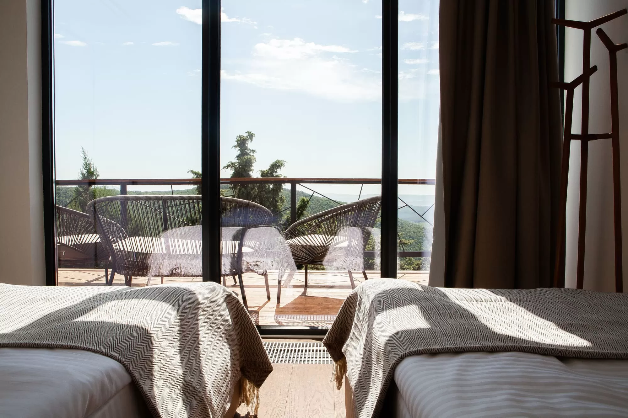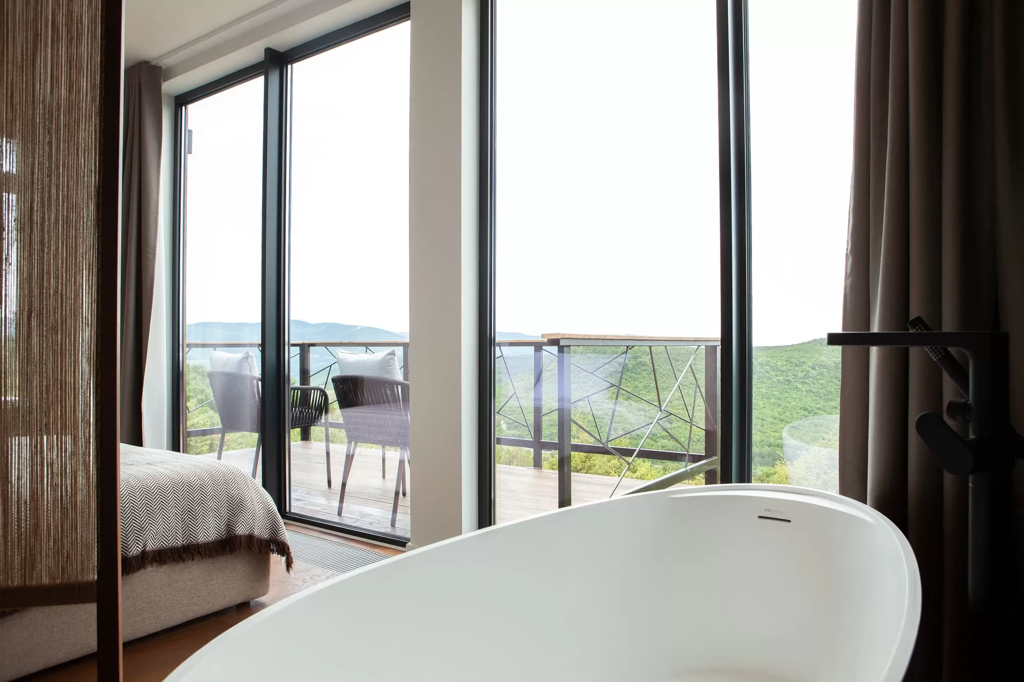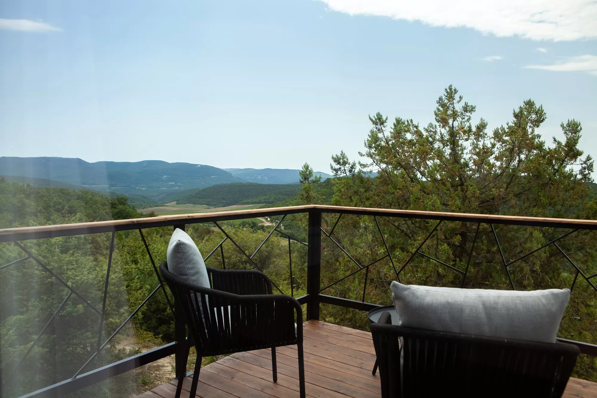 В настоящее время на винограднике уже функционирует панорамный ресторан «Гнездо» и 5 комфортных и современных коттеджей.