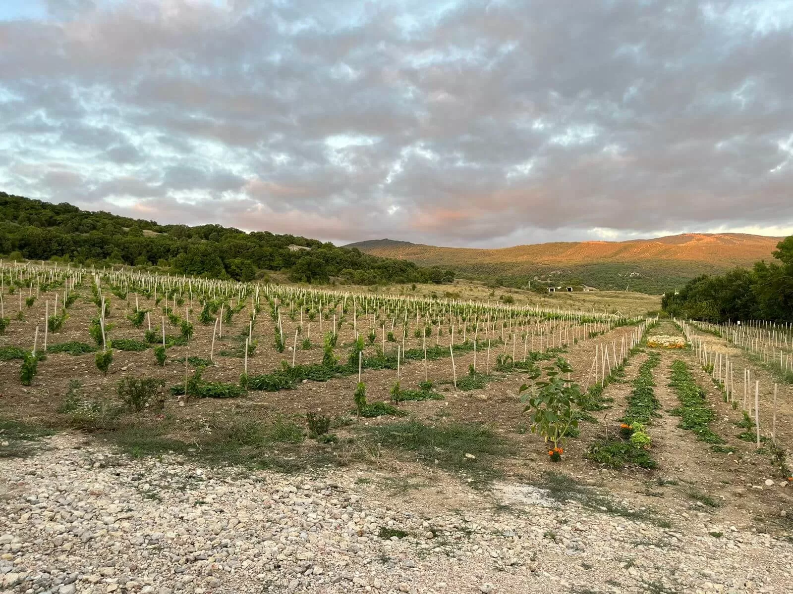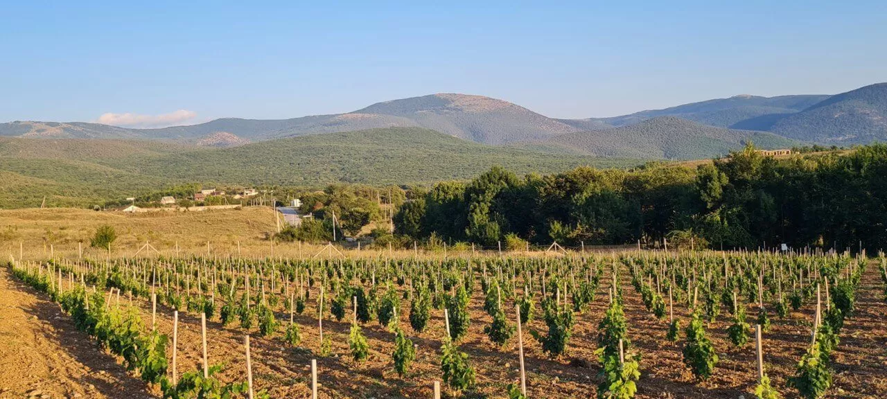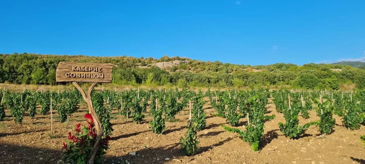 Виноградник (1.88 га) в Байдарской долине молодой, в 2022 году на нем заложены два сорта винограда: Каберне Совиньон и Саперави.