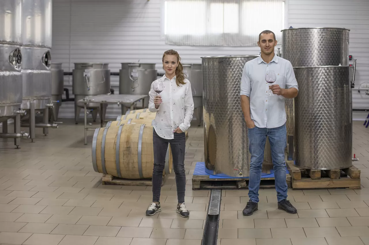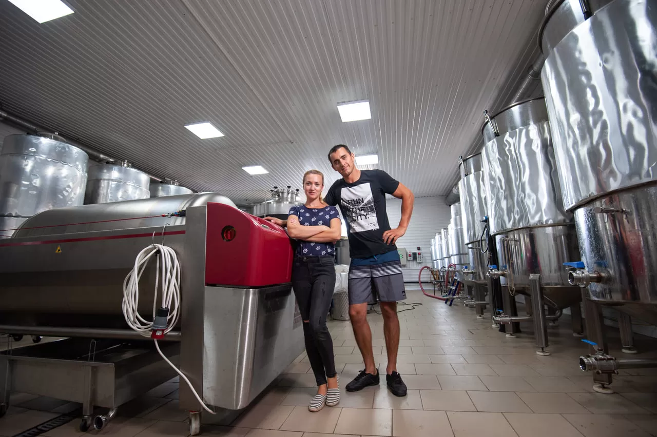 Большинство работ здесь проводится вручную. Своими руками здесь собирают и сортируют виноград, разливают вино, клеят этикетки. Больше того: практически все стальные емкости владелец винодельни Ярослав Узунов спроектировал и изготовил самостоятельно. Помимо стали, вино бродит в бочках, выполненных из кавказского и французского дуба.